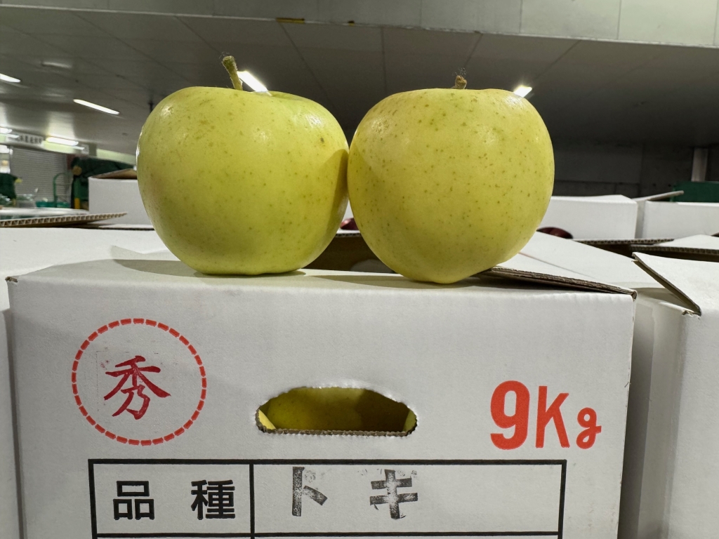 黄色りんごの「トキ」 爽やかな甘みとシャキシャキとした食感があります。スーパーや量販店でも見かけますね。