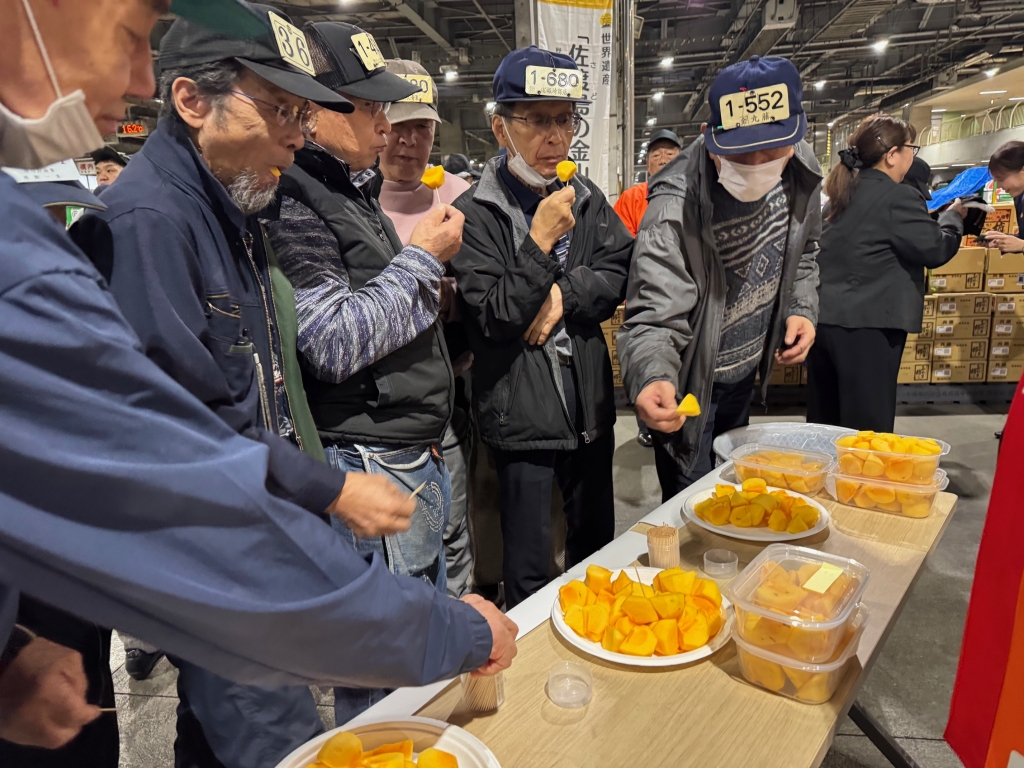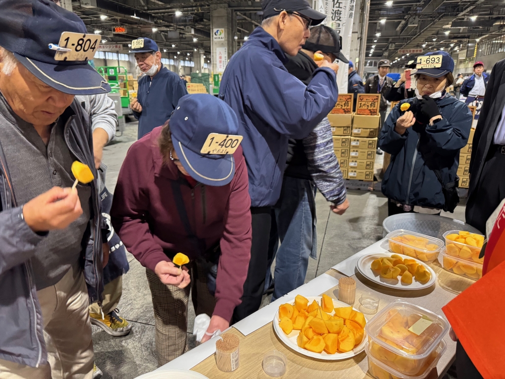 セリの前には試食も行われ、たくさんの方が食べ比べをされてましたよ。