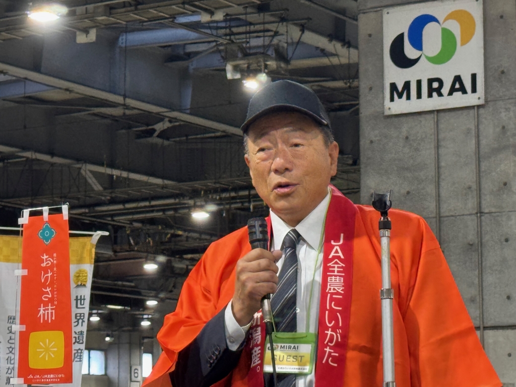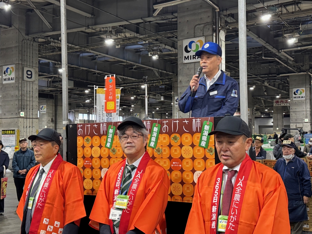 本日はJA全農にいがた県本部による「おけさ柿」のトップセールスが行われました。