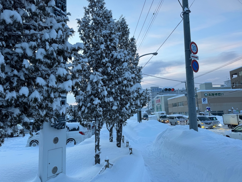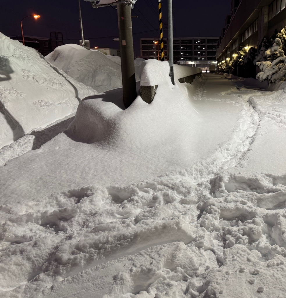 札幌市内は1mを超える記録的な積雪が観測され、歩道も狭く、道路もデコボコです。