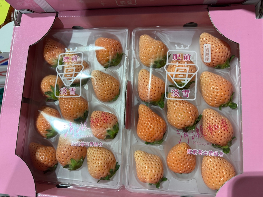 売り場でケースは見かけますが、フタが開いた状態であまり見かけることがない「白いいちご」が並んでいましたよ。