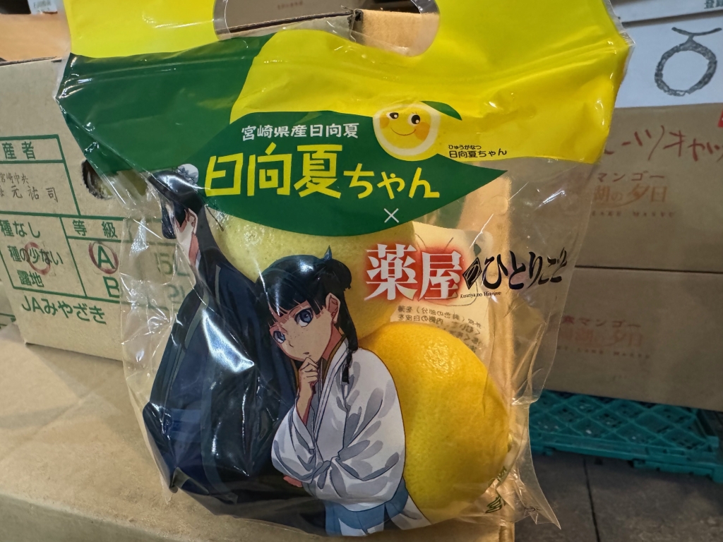 果実売り場には宮崎県産日向夏と「薬屋のひとりごと」とのコラボ商品も!
